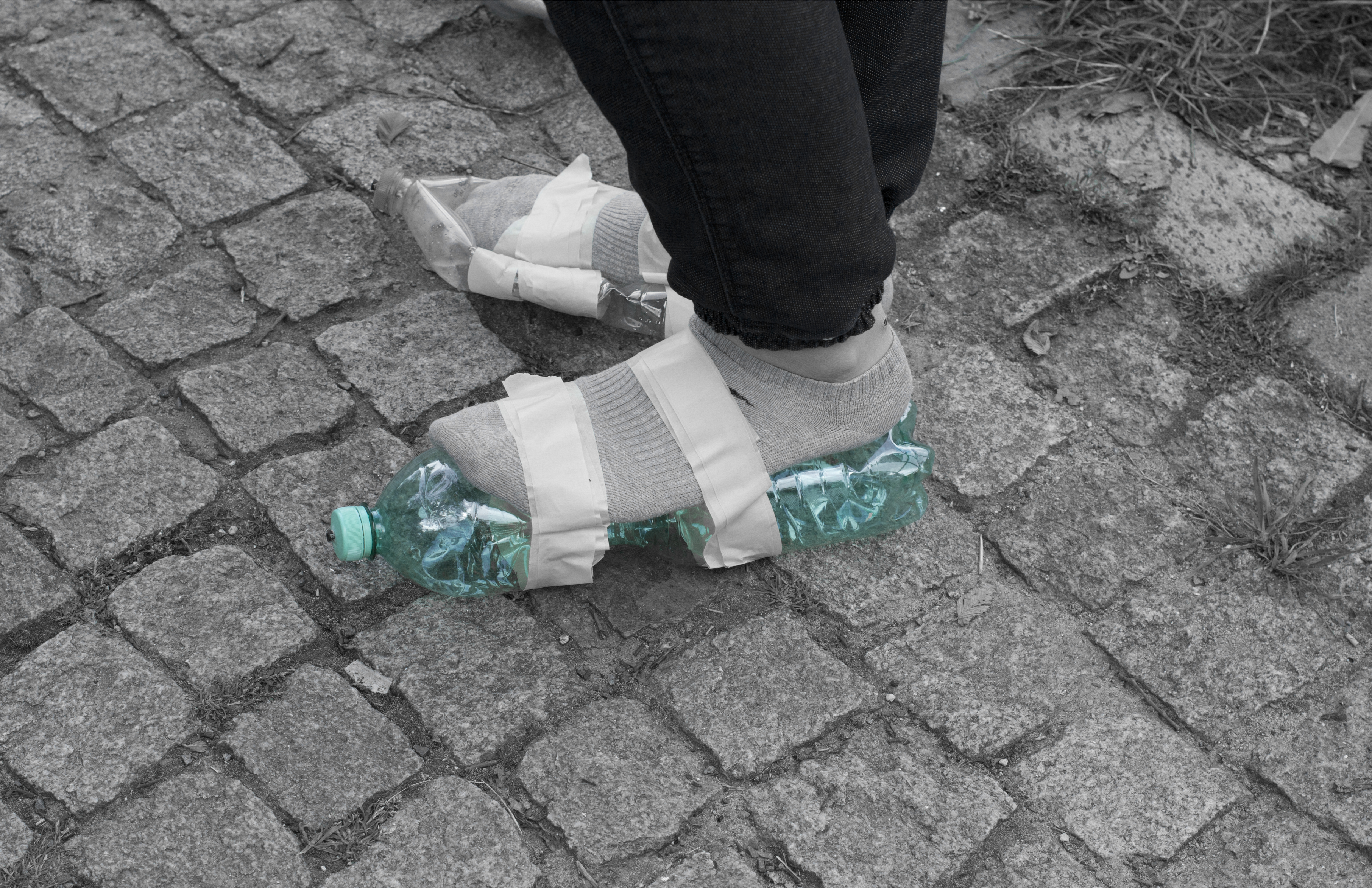 It comes an idea with using plastic bottle as a sample of experiment:I put air valve of a basketball in my bottle, and pumping this bottle to make it bulging. I took it as my air midsole and tie it up with my feet and I ran a series of sport test. At the end, I found the bottle with thick plastic stay the same with no damage. Therefore I found if the wrappage of air bag is strong enough, the air bag midsole desen’t need any other support material.